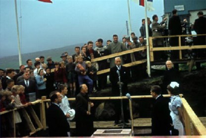 Myndin er tikin 19. juni 1962, tá grundarsteinurin var lagdur til stóru útbyggingina.
