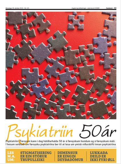 Tá Psykiatriin hátíðarhelt 50 ára dagin, varð eitt blað útgivið. Tað tolir at verða endurlisið, sí viðheft niðanfyri.
